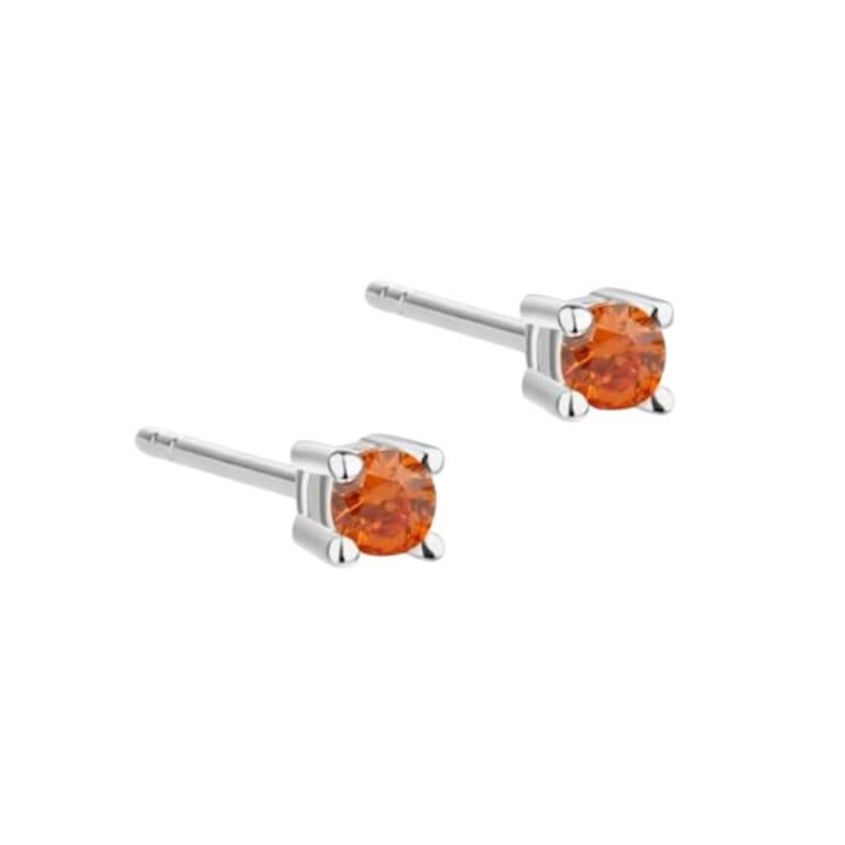 Søde små ørestikker i sterlingsølv prydet med med funklende orange zirkonia-sten.