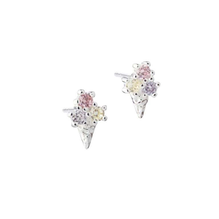 Frozen er et par små søde ørestikker formet som en lille isvaffel prydet med smukke funklende zirkoniasten i forskellige farver der skal ligne iskugler.