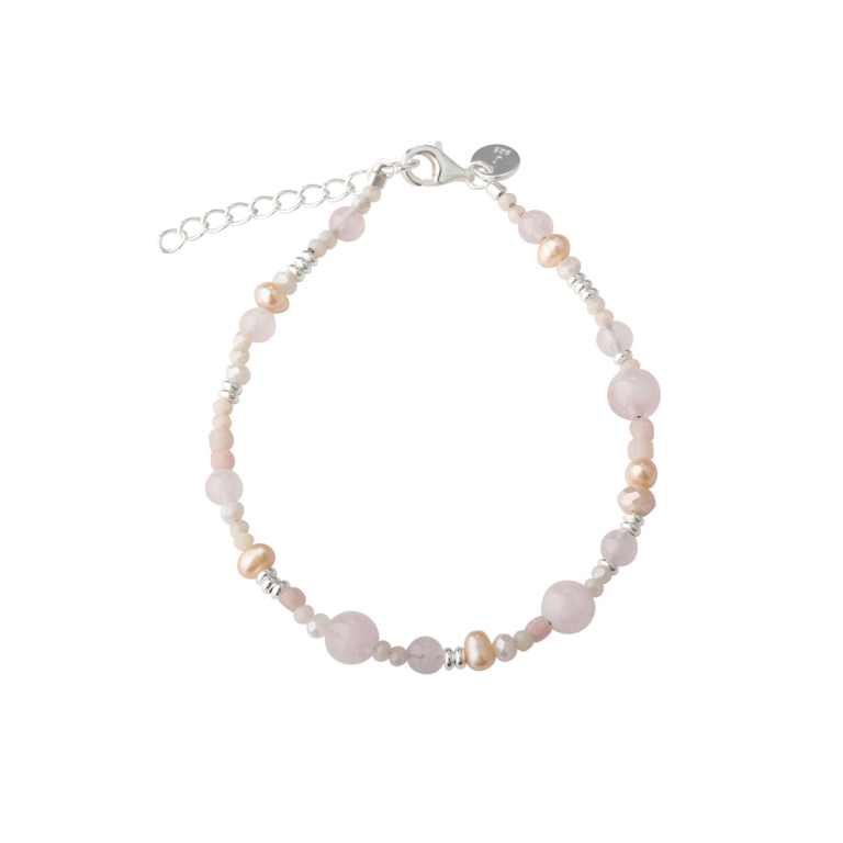 Aqua Dulce Grace Pearl armbånd sølv m. rosa perler (17 + 3 cm)