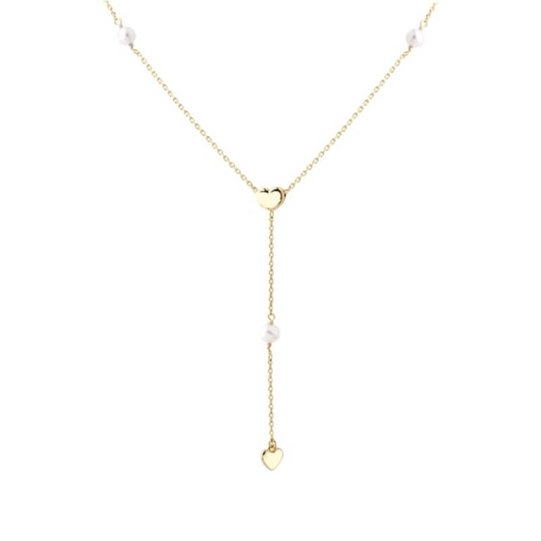 Byd velkommen til den smukkeste Y-halskæde i forgyldt sterlingsølv med et kærligt buskab. Kæden mødes i et flytbart blankt Karla hjertevedhæng hvorfra der hænger endnu et skønt Karla hjerte. Langs kæden er der samtidig nænsomt sat elegante hvide ferskvandsperler. En sød og helt uundværlig tilføjelse til din smykkesamling.