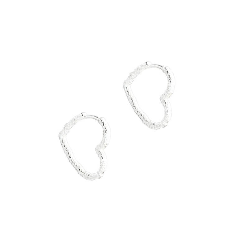 Smukke knækcreoler der er formet som et skævt hjerte med en rå overflade.