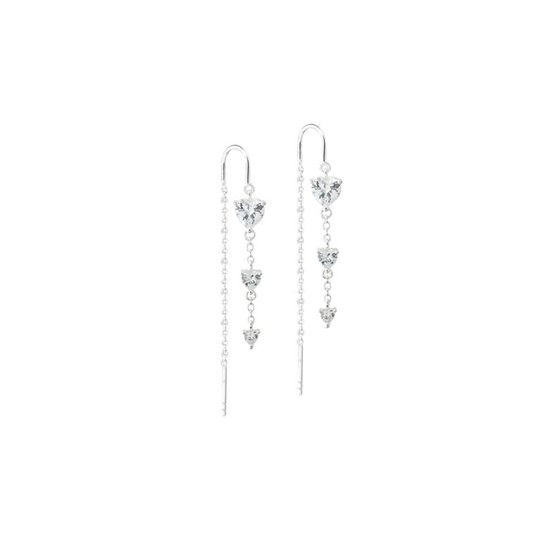 Vida Hearts er et par elegante øreringe prydet med en række funklende klare hjerteformede zirkonia-sten i forskellige størrelser. Disse danser frit fra øret som et kærligt og glimtende statement.