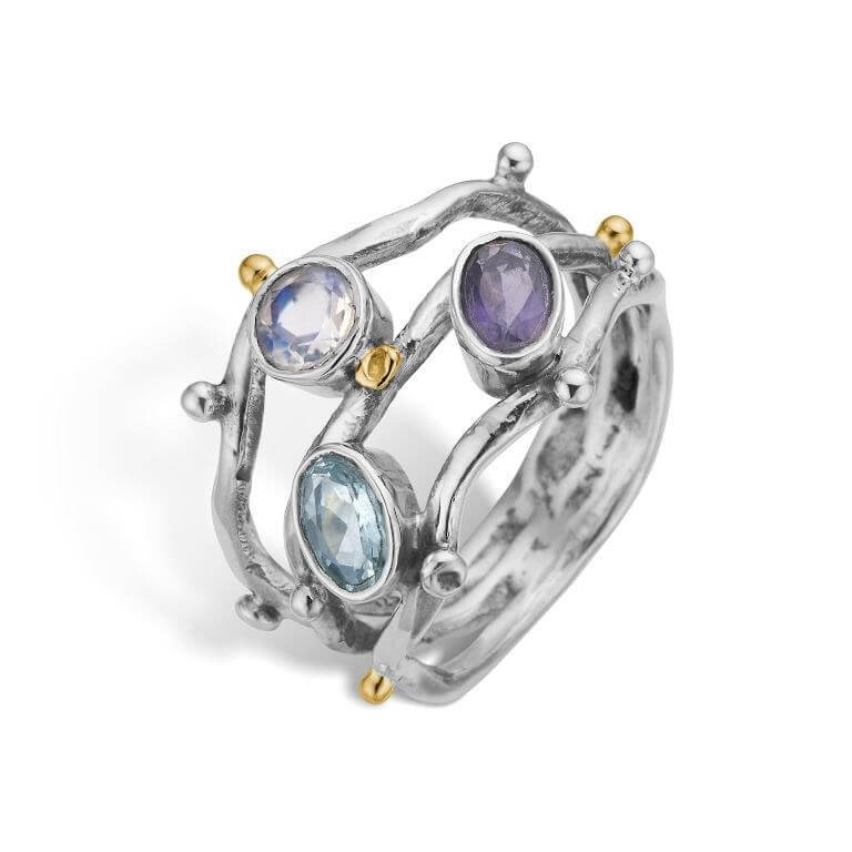 Billede af By Birdie Grace Triple Ocean ring sølv + 14kt. m. ædelsten (str. 55) By Birdie Grace Triple Ocean ring sølv + 14kt. m. ædelsten (str. 55)
