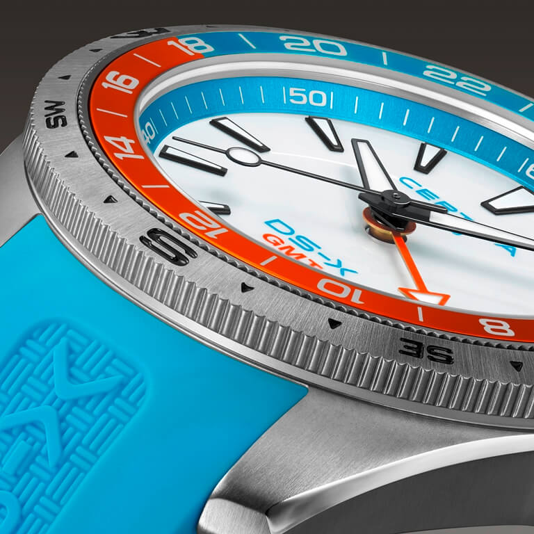 Certina DS-X GMT Quartz herreur blå gummirem 20 bar 41mm