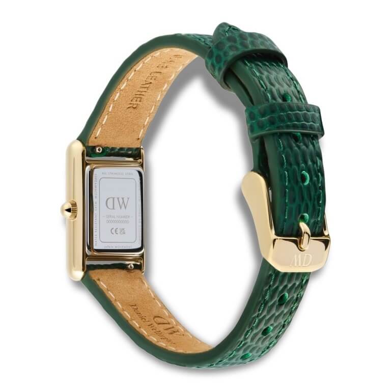 Daniel Wellington Bound Mini Gold dameur stål grøn læderrem 3bar 17mm