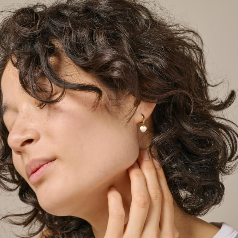 Amore hoops fra ENAMEL Copenhagen er et par cool, chunky hoops med et fyldigt hjertevedhæng i forskellige farver. Amore betyder kærlighed på italiensk, og det må man sige disse skønne øreringe emmer af. De er kærlighedsfyldte på en cool og legende måde, men hvis du en dag alligevel gerne vil nedtone looket lidt, så kan den chunky hoop selvfølgelig også bruges uden vedhæng, ligesom de fleste andre hoops fra ENAMEL Copenhagen.