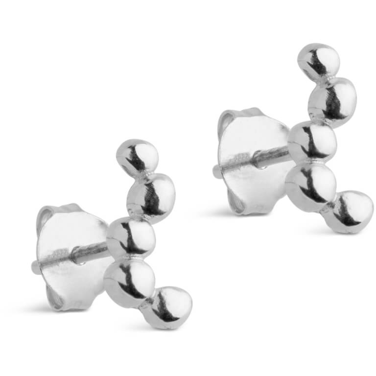 Nara Long har et organisk og skulpturelt look, hvor de bløde bobler ligger side om side i en bølgende rytme. Overfladen er blankpoleret i en kølig sølvfarve, og de afrundede elementer minder om små, glatte sten formet af naturens kræfter. Designet udstråler balance og harmoni, samtidig med at det har en rå og moderne kant. Nara Long øreringen findes også belagt med 18 karat guld.