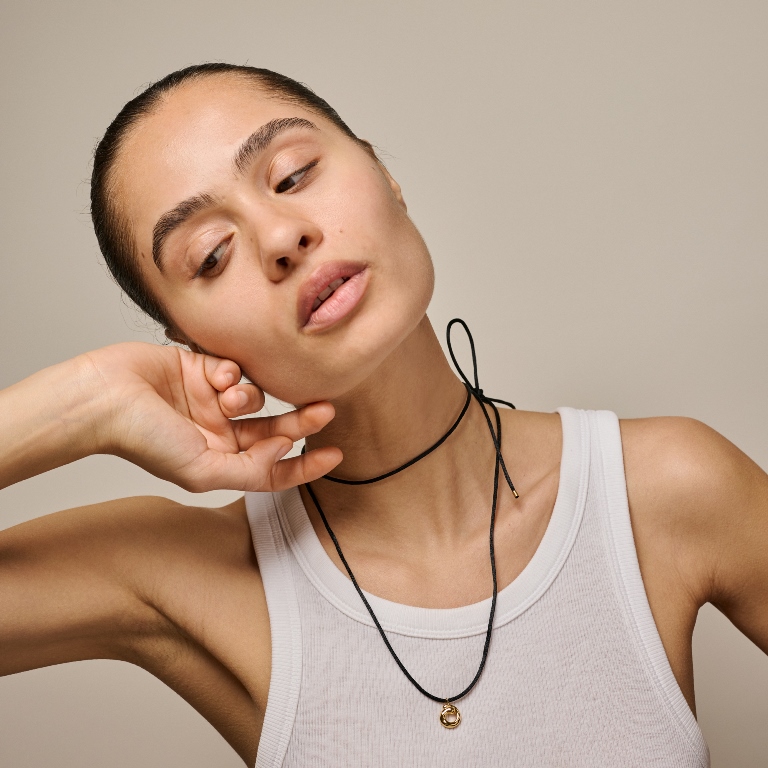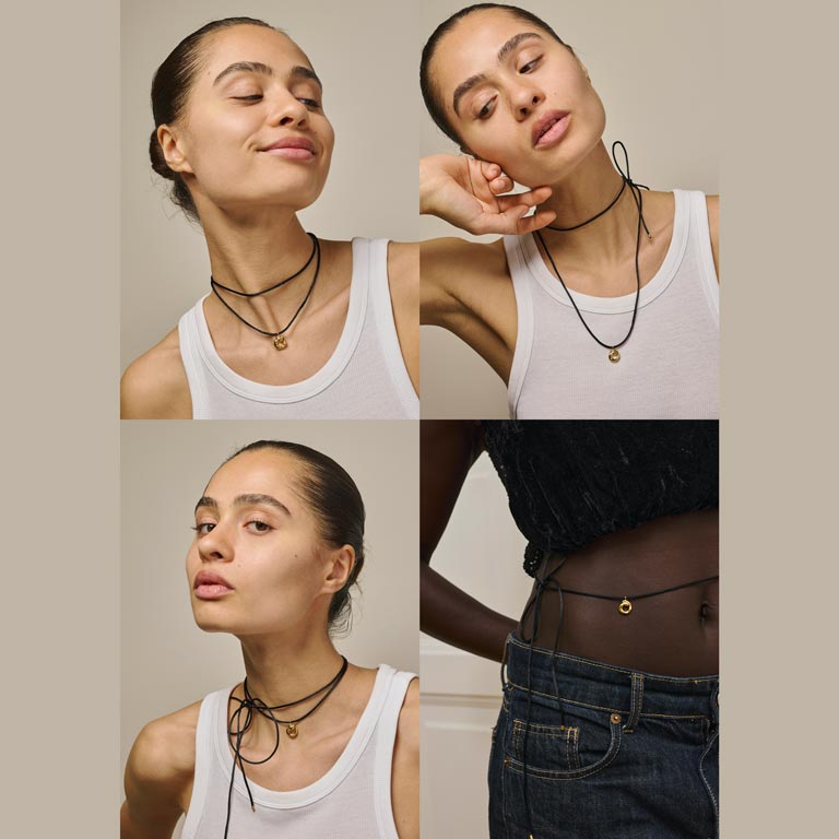 ENAMEL Copenhagen Sora Tie halskæde forgyldt sølv med nylon-snøre