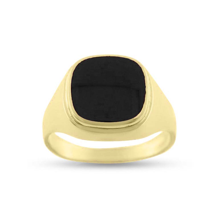 Herrering lukket bund onyx 12*12 mm. 14 kt.