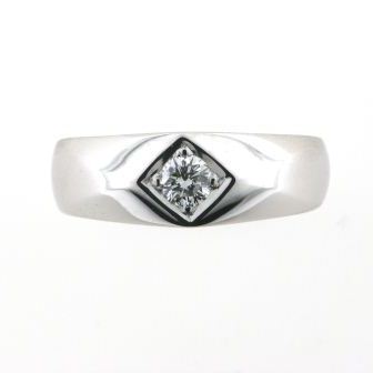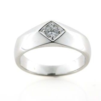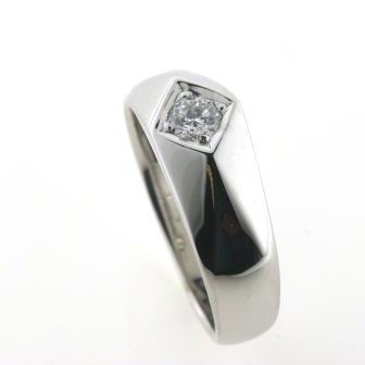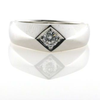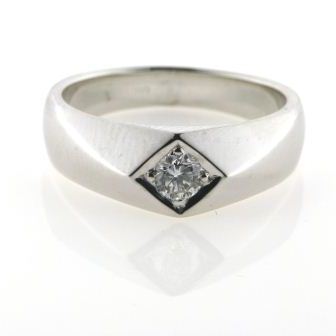 Herrering massiv, brilliant 0,30 w/vs. plade 6*6 mm., båndring 14 kt. hvg.