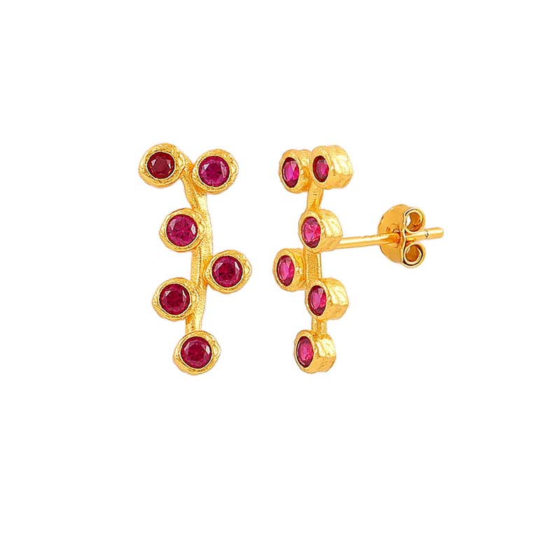 Amber er et par elegante øreringe prydet med funklende røde zirkoniasten fordelt forskudt langs øreringen. Kombinér dem med andre skønne øreringe fra Hultquist for maksimal effekt.