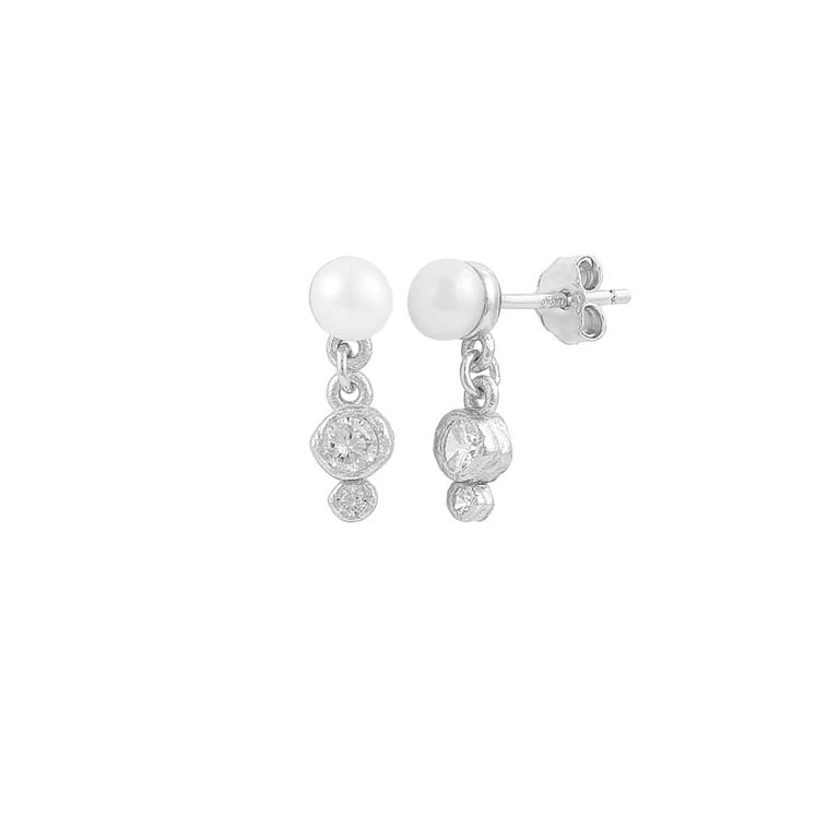 Elowen er et par søde små ørestikker prydet med en magisk hvid ferskvandsperle hvorfra der hænger et par dansende og funklende klare zirkoniasten i forskellige størrelser. Kombinér dem med andre skønne øreringe fra Hultquist for maksimal effekt.