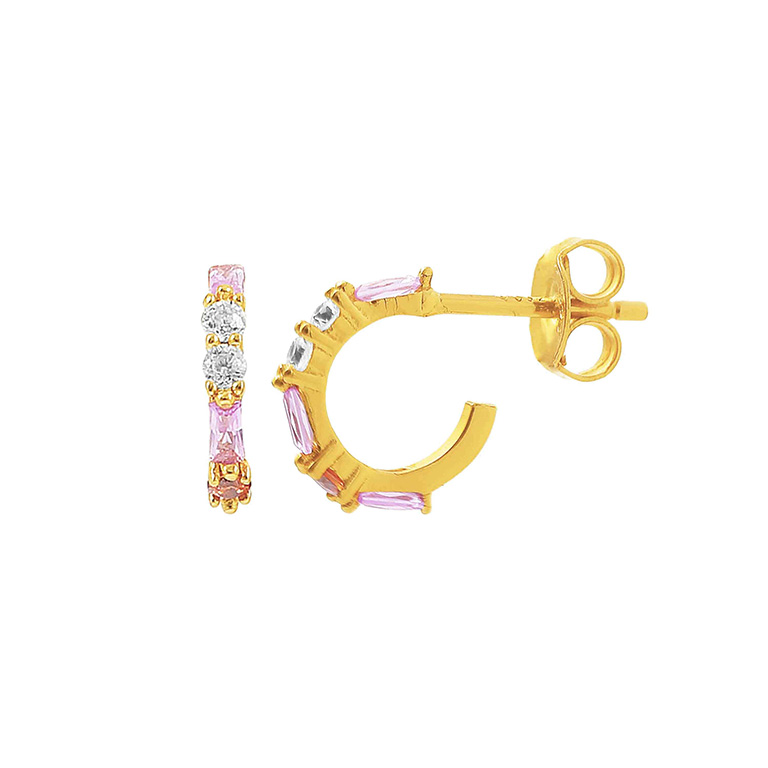 Smukke øreringe i sølv forgyldt med farvestrålende zirconia-sten.