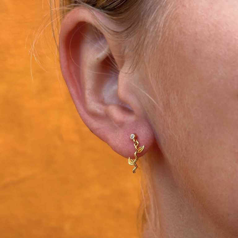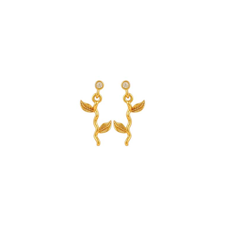 Disse smukke øreringe er håndlavet i 18 karat forgyldt sterling sølv, og deres naturtro og organiske form med livagtige blade udstråler elegance og ynde på fineste vis.