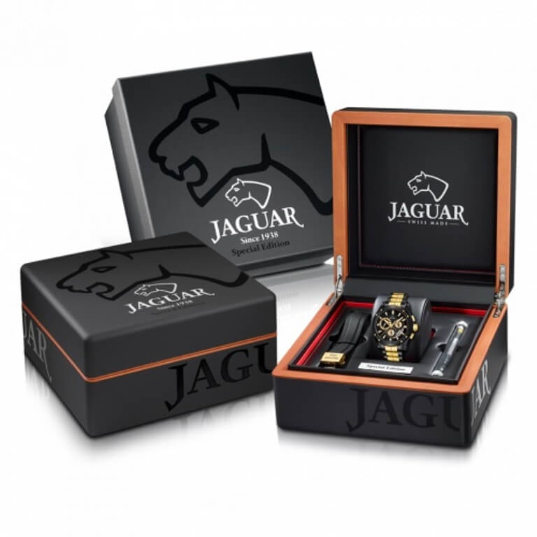 Med et Limitede Edition ur fra Jaguar får du en lækker urboks som indeholder en kraftig sort læderrem til uret samt lænkeværktøj.