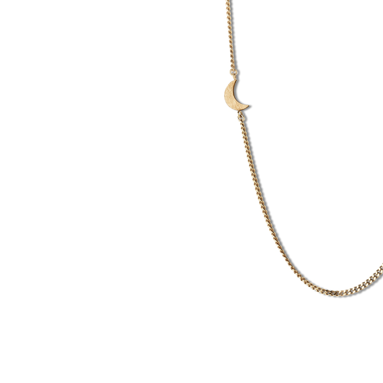 Smuk halskæde i sølv forgyldt med en lille og fin halvmåne på kæden.