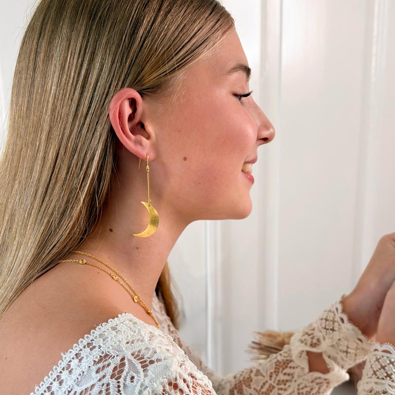 Den er designet på en sådan måde, så den bevæger sig, når man har den på. Øreringen fremstår således dansende og levende, hvilket gør den til en fin detalje.