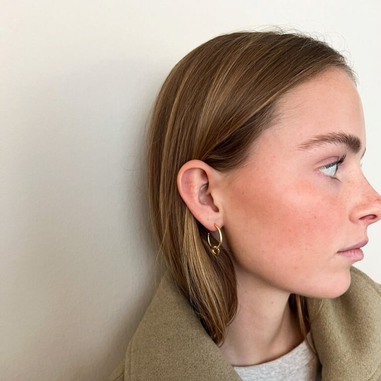 Øreringen fås i både en stor og en lille version, samt i 925 sterlingsølv eller forgyldt med 18 karat.