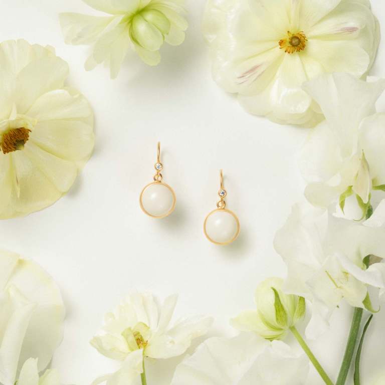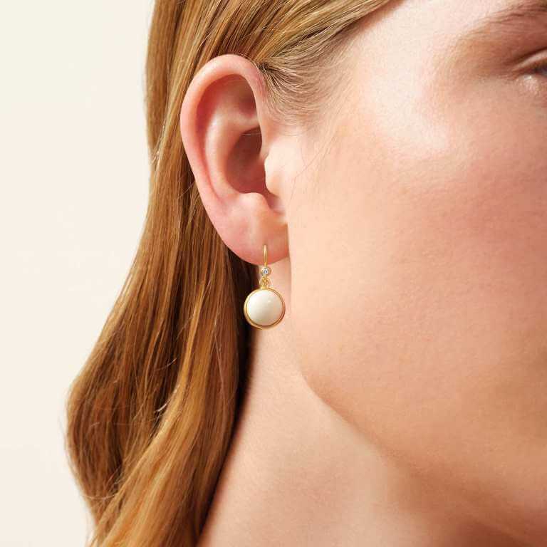 De ikoniske Prime øreringe er kendetegnet ved en rund cabochon slebet krystal, indrammet af det karakteristiske Julie Sandlau guldbånd. Øreringen er lavet i 22 karat forgyldt 925 sterling sølv og dekoreret med brilliantslebne cubiske zirkonia, der udgør en perfekte kontrast til forgyldningens varme og de farvede krystaller. Den runde krystal måler 10 mm i diameter.