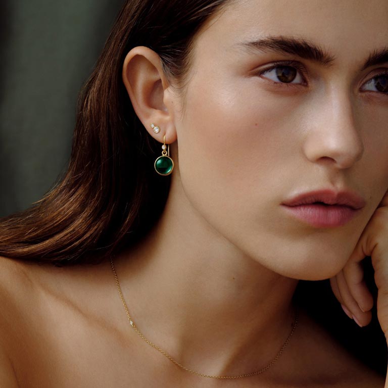 Prime øreringe i 22 karat forgyldt 925 sterlingsølv med mørkegrønne krystaller og klare zirkonia.
