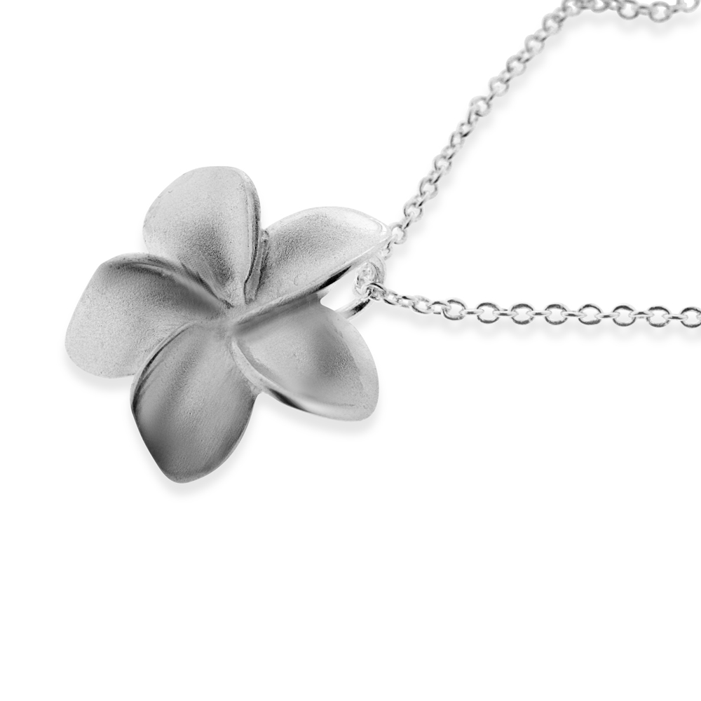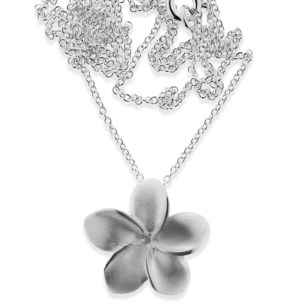 Kæde sølv med sandblæst blomst 18mm (med skjuldt øsken)