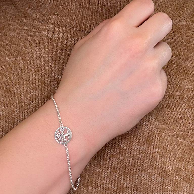 Denne unikke armlænke, smykket med "Livets Træ", er en hyldest til livets og naturens uendelige cyklus. Lavet i en varm guldglød, er vedhængets diameter på 12 mm en fin, men markant tilføjelse til den 18,5 cm lange kæde. Dets fine udskæringer fanger øjet og inviterer til reflektion over træets betydning.