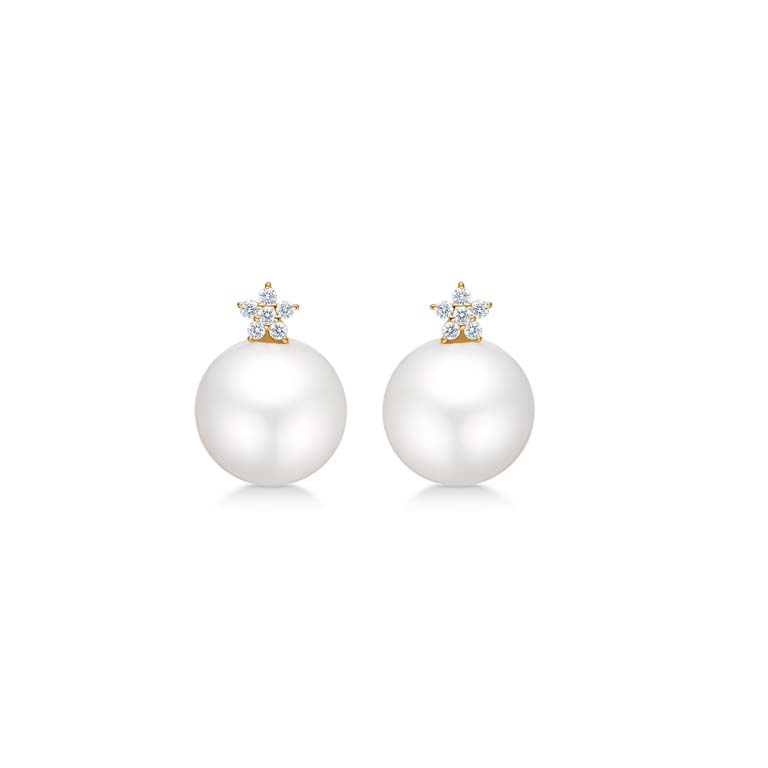 Céleste øreringe i 14 karat guld med 0,14 ct. brillantslebne diamanter W.SI og rund kulturperle – måler 18 mm.