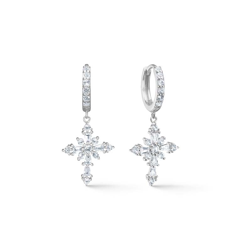 Celestial by Medina øreringe i sterlingsølv med facetslebne hvide topaser og pavésat creol.