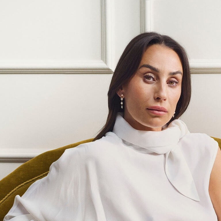 Chefdesigner Mads Ziegler henter inspiration fra arkaders geometriske former og lader kuplen på Dome øreringene spejle lys over sin kurvede overflade. Pavé-satte brillanter bevarer et stramt, arkitektonisk udtryk, mens tre kulturperler i nedadgående graduering på hver ørering tilfører rolig bevægelse og balance. Kontrasten mellem de præcise former og perlens organiske glød understreger Gold Label universets sammenhæng mellem ren geometri og bløde materialer. Grabbefatningen udføres med nøje præcision for et detaljerigt, harmonisk udtryk.