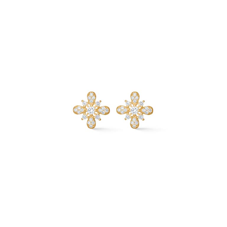 Designer Mads Ziegler lader rosenknoppens bløde kurver forme Élodie øreringenes karakteristiske firekronede roset. De klassiske, afrundede konturer balancerer naturens levende former med dansk minimalisme, hvor hver diamant holdes sikkert på plads af præcise grabbefatninger. Den kompakte silhuet spejler en moderne tilgang til blomstens symbolik, og formens harmoni fremhæver både lethed og tyngde. Gennem omhyggelig udvælgelse af materialer og grabbefatning opnås en ørering, der udtrykker personlighed og bevidst stilvalg – inspireret af den organiske skønhed i danske haver og tidløs æstetik.