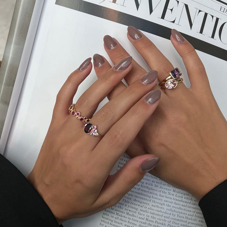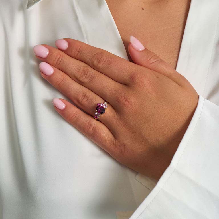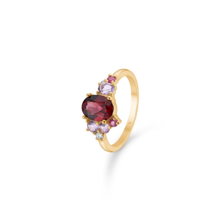Sten: granat, pink ametyst, pink safir og rubin.