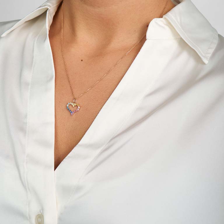 Mads Z Tender Heart Rainbow hjerte vedhæng i 14 karat guld med ægte ædelsten.
