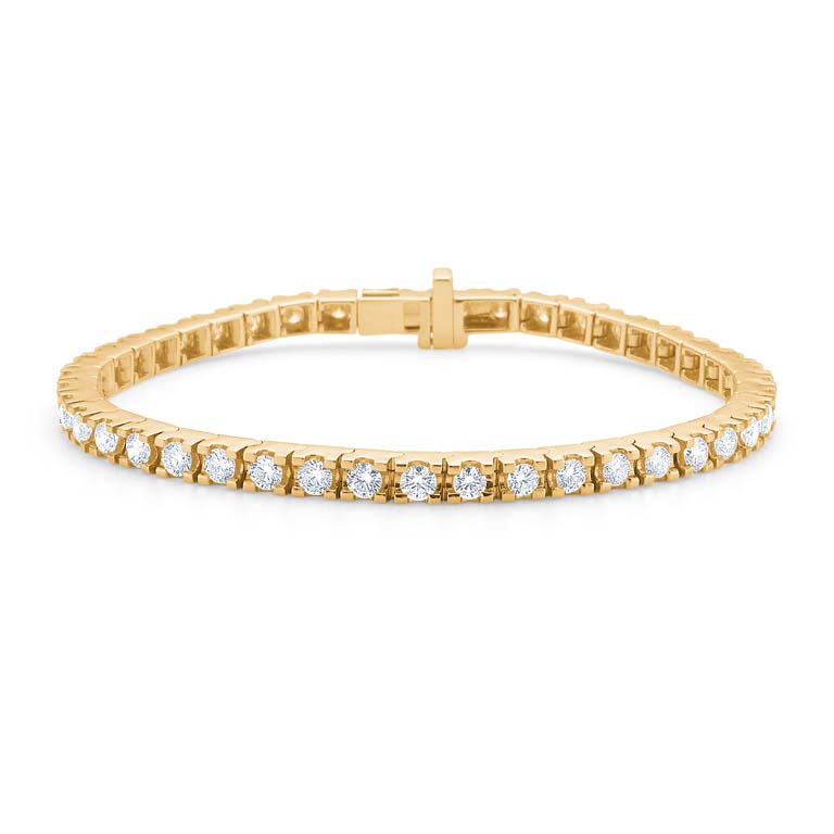 Tennisarmbåndet er et universelt ikon blandt smykker - et mesterværk af luksus og finesse. Navnet udspringer af den legendariske historie om tennisspilleren Chris Evert, der under en US Open turnering tilbage i 1987 tabte sit diamantarmbånd under en kamp. Hun bad om en timeout for at lede efter det, hvilket gav anledning til, at disse smukke armbånd blev kendt som ”tennisarmbånd”. Siden da har de været et ikonisk symbol på både sportslig prestige og en luksuriøs livsstil. Mads Z’s version af Tennisarmbåndet er udført i 14 karat guld isat brillanter i W.SI kvalitet.