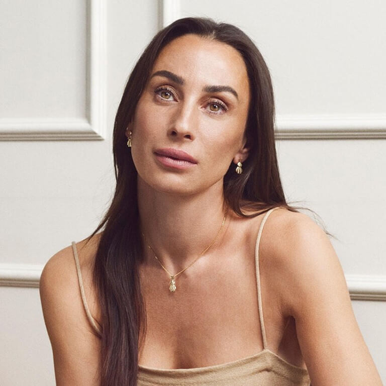 Designer Mads Ziegler modellerer Velvet som et signatursmykke, hvor formsproget henter inspiration fra naturens bløde fløjlsfolder, hvor lys og skygger veksler i rolige rytmer. Den tredobbelte, bevægelige vifteform skaber visuel dybde og følger ansigtets naturlige bevægelser, mens håndbearbejdede riller og satinmat overflade demonstrerer guldsmedens kompromisløse fokus på detaljer og kvalitet. Smykket forener Gold Label kollektionens fokus på ægte luksus og gennemført håndværk med moderne arkitektonisk æstetik.