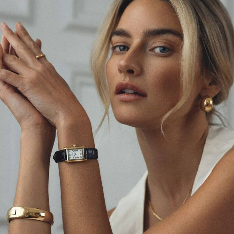 Mockberg Timeless Black Leather Gold dameur - MB0245