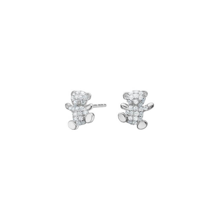 Søde små børneørestikker i sølv formet som bamser prydet med funklende klare zirkonia-sten.