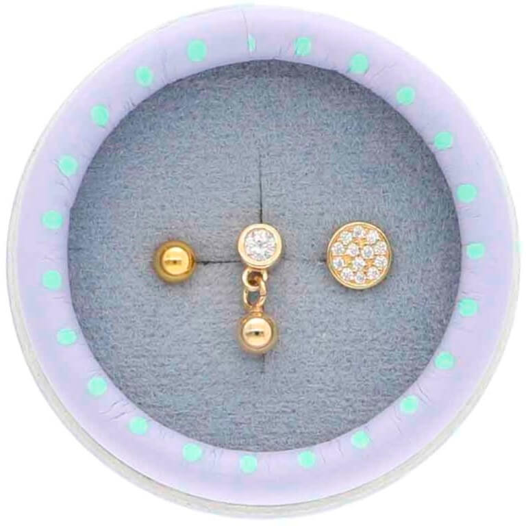 The Pop Box er en fin samling af 3 små søde ørestikker prydet med funklende zirkonia-sten. Du kan med dette sæt mikse og matche øreringene på kryds og tværs, eller bruge dem som en tilføjelse til din samling.