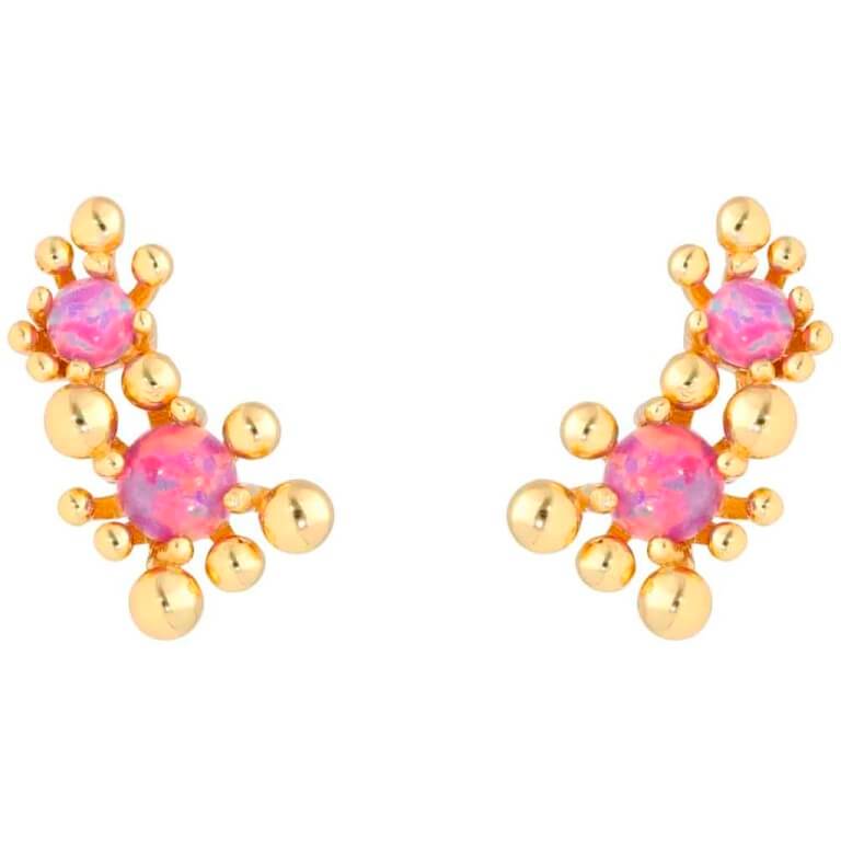Winnie Duo Purple øreringene er et par elegante ørestikker med flotte organiske grabber som nænsomt snor sig omkring de flotte funklende syntetiske opaler. Øreringene er både smukke alene eller sammensat med andre skønne øreringe.