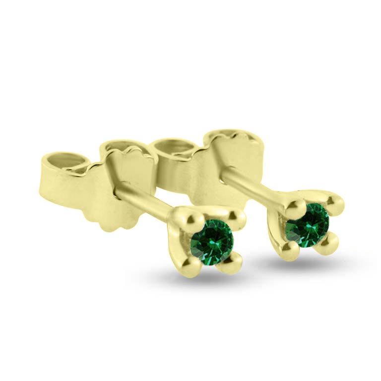 Ørestik smaragd, 4 grab. fatning, 2* 2,5 mm (ca. a 0,06 ct.) 14 kt.