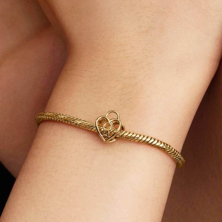 Pandora Åbent Hjerte Hængelås charm forgyldt metalblanding