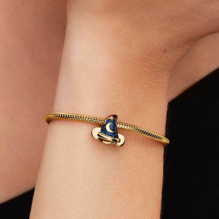 Bær et ægte stykke Disney-magi. VPandoras 14 kt. guldbelagte charm består af troldmandens hat inklusive månen og stjerner indfattet med en funklende laboratorieskabt diamant (0,007 ct.) – et symbol på uendelig fantasi.