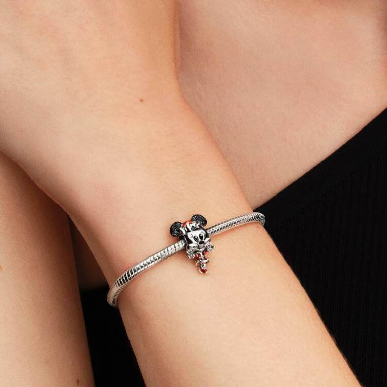Disneys Minnie Mouse glitrer af julecharme. Hendes nissehue og juletøj er fremstillet i sterlingsølv og dekoreret med farverige emaljedetaljer, der udstråler varme, glæde og julens magi.
