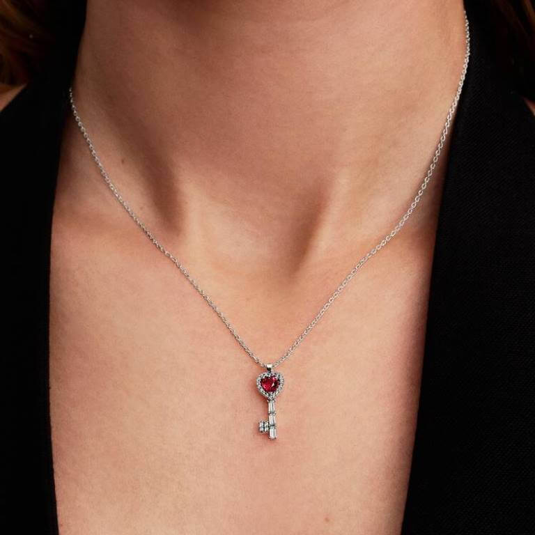 Her er nøglen til at skinne. Pandoras hjertenøglevedhæng i sterlingsølv har en klar rød krystal omgivet af detaljer i klar kubisk zirkonia. Brug den i tre forskellige længder for at fuldende ethvert look.