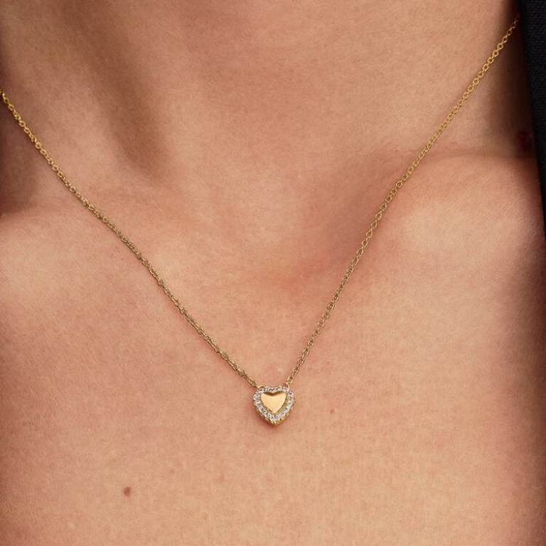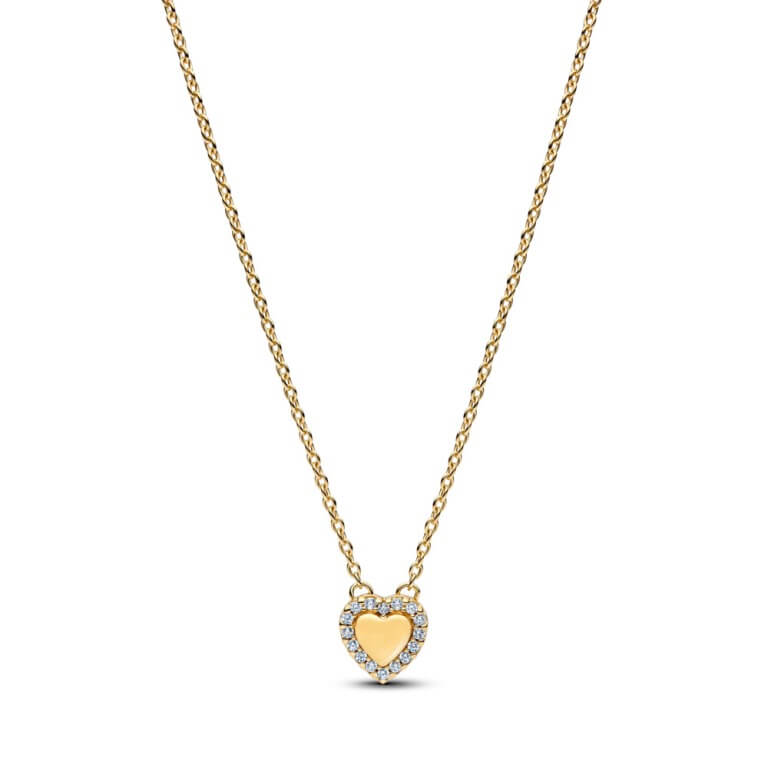Pandora Hjerte Halo halskæde forgyldt metalblanding m. cz (45 cm)