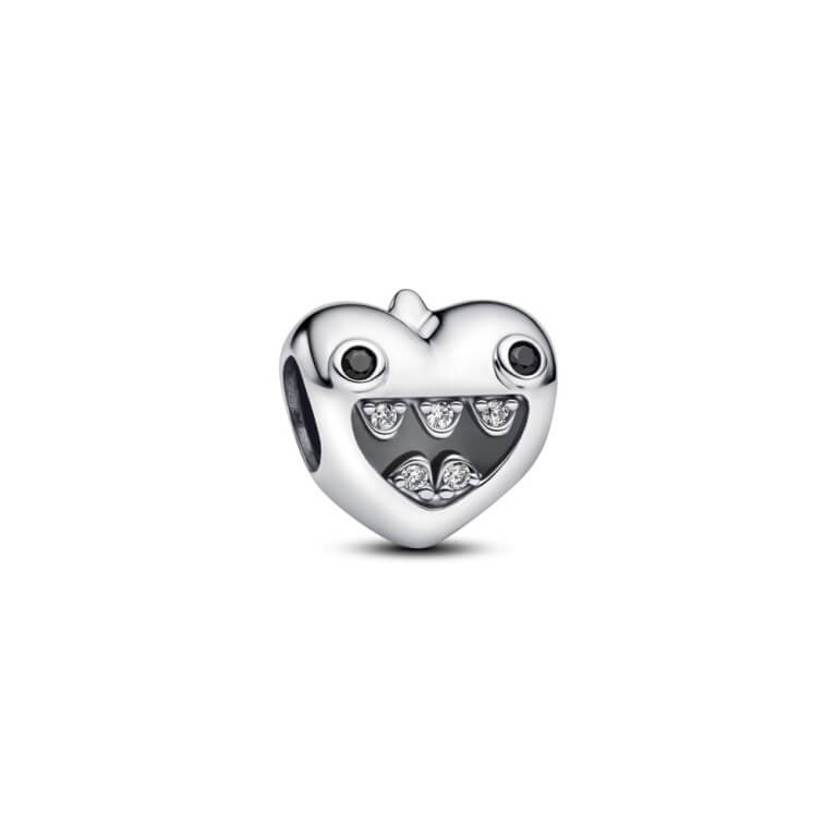 Det hjerteformede charm er fremstillet i sterlingsølv og har indgraveringen "Mum of little monsters" på den ene side og et monsteransigt på den anden. Tredimensionelle pigge, udskårne detaljer og funklende sten pryder dette charm og gør det endnu mere iøjnefaldende. Dette charm er inspireret af moderskabet i alle dets udtryk og repræsenterer den måde, hvorpå vores små skurke også kan være en mors største glæde.