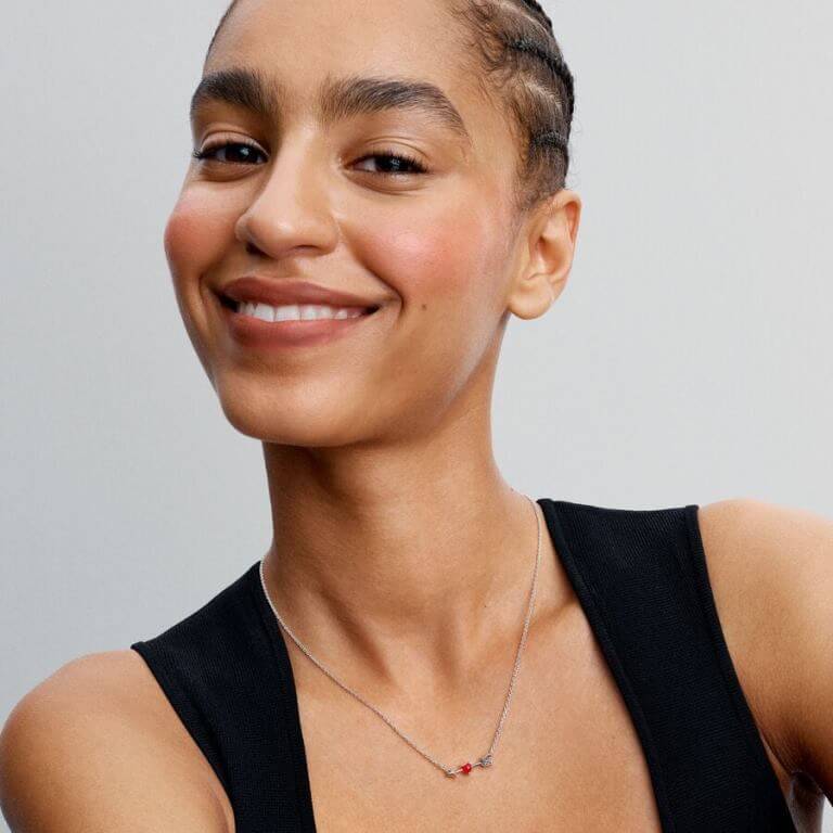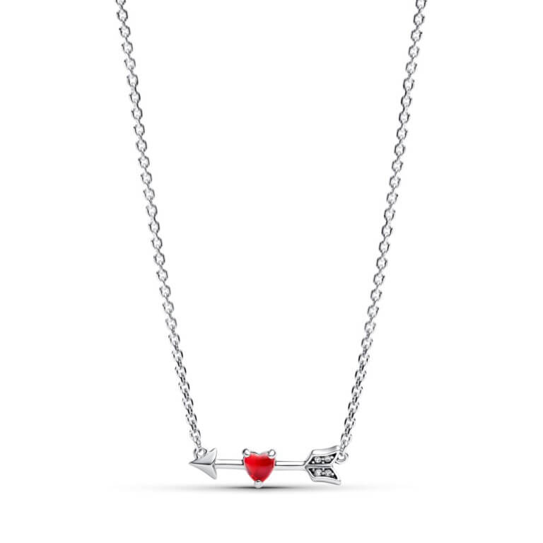 Halskæden, der har et rødt muranoglashjerte i midten af Amors pil, funkler med fire sten i klar kubisk zirkonia langs pilens styrefjer og udgør det universelle symbol på kærlighed. Bær den alene, eller sæt den sammen med dine andre halskæder, og skab et personligt look. Med en justerbar længde på 40, 45 eller 50 cm er den perfekt til alle halsudskæringer.