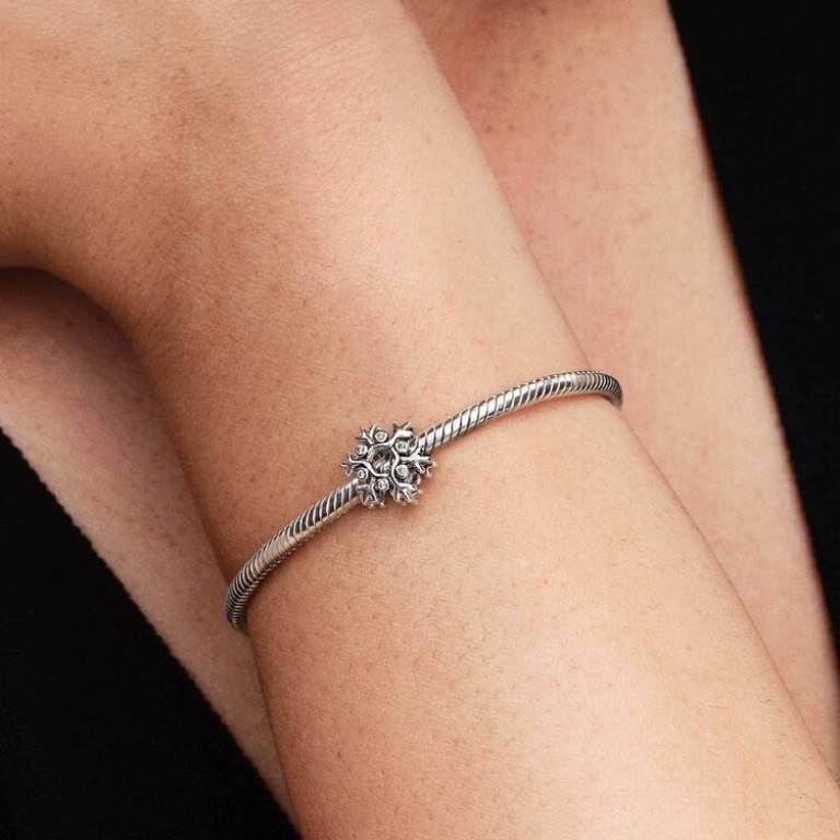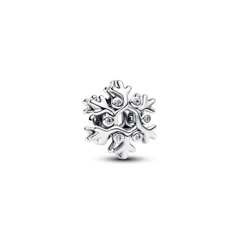 Oplev vinterens magi med et snefnugcharm i åbent design. Det er fremstillet i sterlingsølv med funklende kubisk zirkonia og indfanger frostens sarte skønhed. Bær det alene eller sammen med andre charms, og bliv klædt på til årstiden.