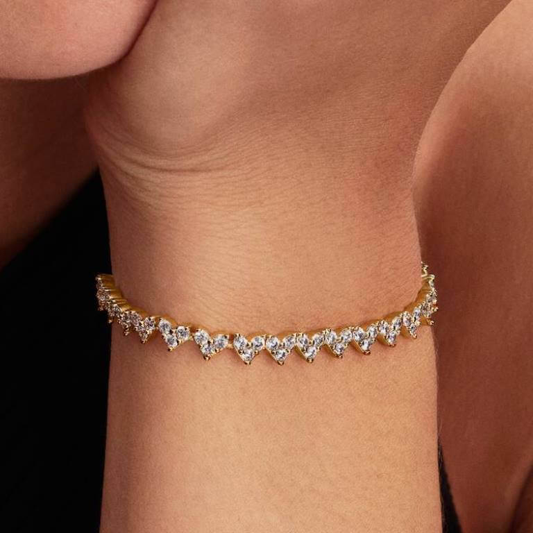 Billede af Pandora Tre Sten Hjertearmbånd forgyldt metalblanding m. cz (20 cm) Pandora Tre Sten Hjertearmbånd forgyldt metalblanding m. cz (20 cm)