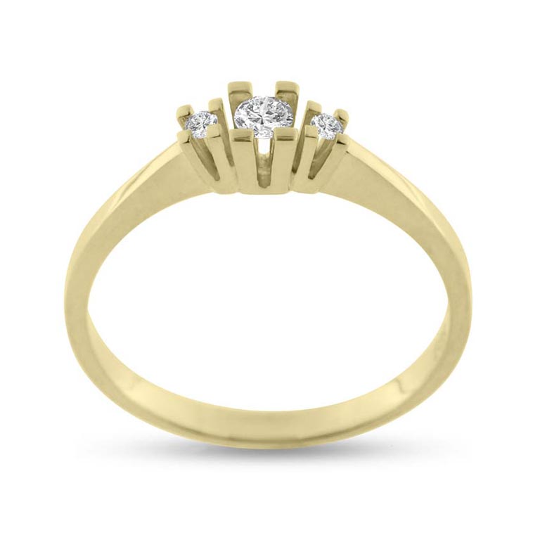 Ring 3 sten, 1 brill. 0,10 w/vs., 2* brill. a 0,03 w/vs. 14 kt.