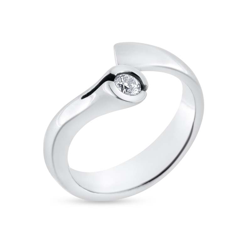 Ring forskudt, brill. 0,15 w/vs. 14 kt. hvg.